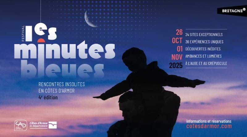 Du dimanche 26 octobre au samedi 1er novembre 2025, la 4ème édition du festival Les Minutes Bleues vous invite à vivre des expériences insolites et inédites, dans plusieurs hauts lieux du patrimoine naturel et culturel des Côtes d’Armor, baignés dans la lumière bleue de l’aube ou du crépuscule. Un événement pour les curieux de tous âges !
